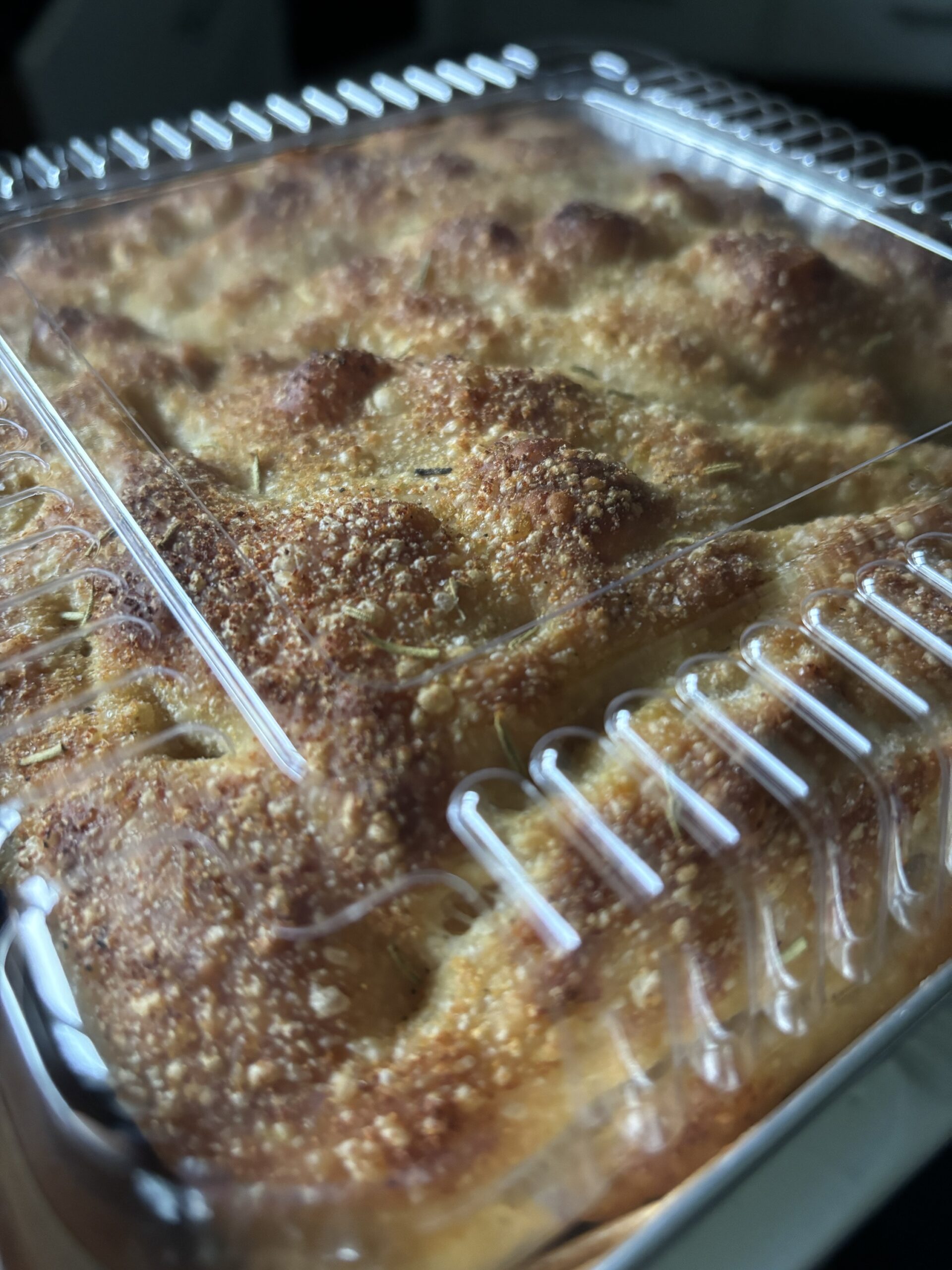A golden, airy flatbread made with organic ingredients, and infused with rosemary and olive oil. Crisp on the outside, soft inside, and full of rustic flavor.